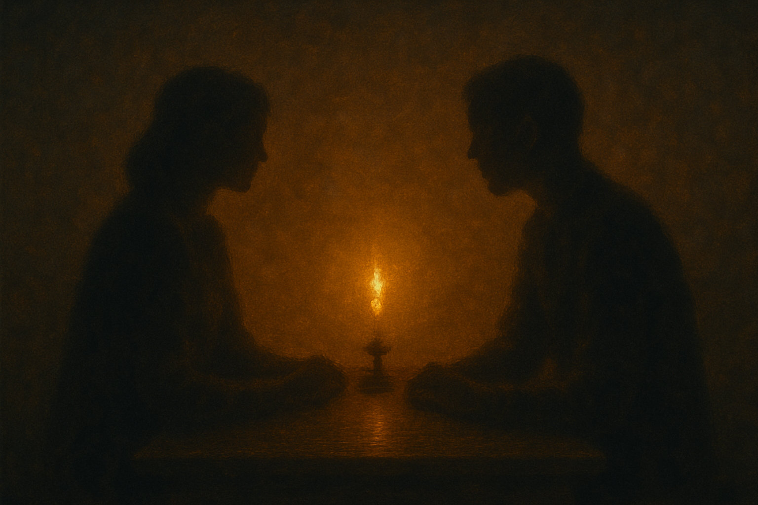 Her fingers fumble at the knots. Her hands are shaking. Mulsae can't bear to look at her. But then he does and sees it. Not just terror. Realization. She isn't trembling from confusion anymore. She's trembling because she understands.